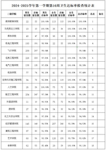 2024-2025学年第一学期第16周卫生达标率检查统计表