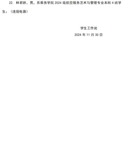 2024年11月27日晚,学生公寓管理中心进行安全检查中发现以下学生存在违规违纪的现象,现予以全校通报。