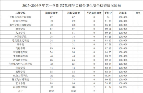2025-2026学年第一学期第7次辅导员宿舍卫生安全检查情况通报