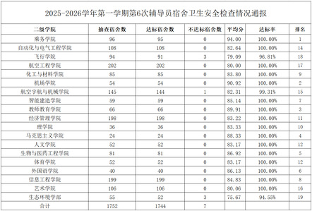 2025-2026学年第一学期第6次辅导员宿舍卫生安全检查情况通报