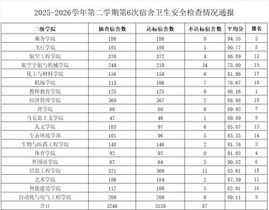 2025-2026学年第二学期第6次宿舍卫生安全检查情况通报